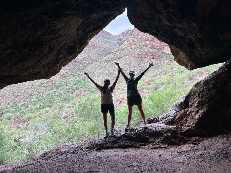 After heavy prolonged rains, the 240-foot Carney Springs Waterfall dramatically bursts into life. You can easily get right up to the base for a wilderness swim or even a shower, plus enjoy the small pool directly below it. Optional side trips to Shaka Cave and Wave Cave round out a day of adventure in the Superstition Wilderness. Note that shortly after weather events, Peralta Road can become rough and have washes with flowing water.