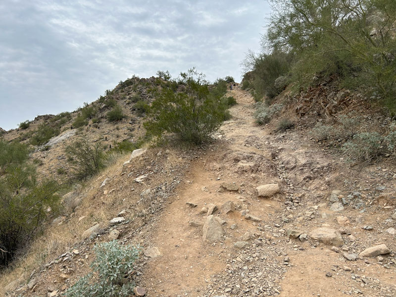 As you get closer to the mountains, the trail steepens significantly. The trail has loose gravel and rocky protrusions, so it’s not great for anyone who’s not sure on their feet.